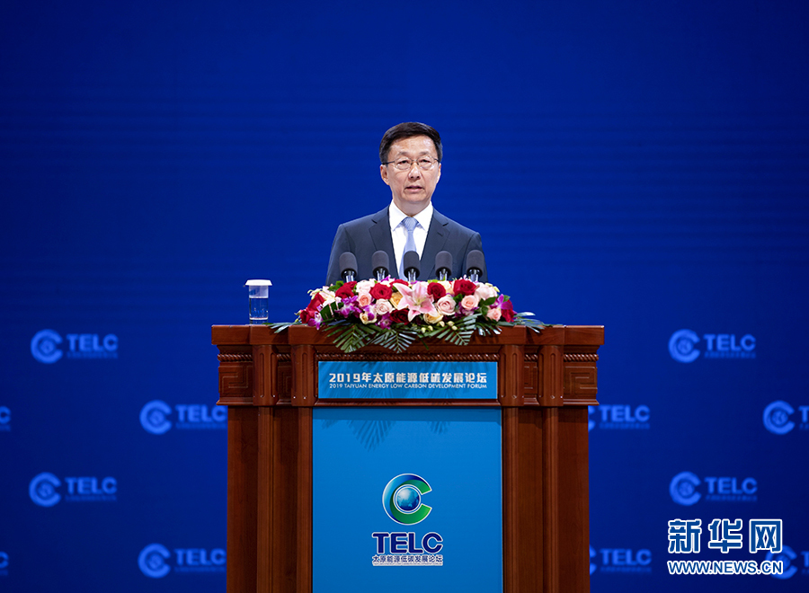 10月22日,中共中央政治局常委、国务院副总理韩正出席2019年太原能源低碳发展论坛开幕式,宣读习近平主席贺信并发表主旨演讲。 新华社记者 燕雁 摄