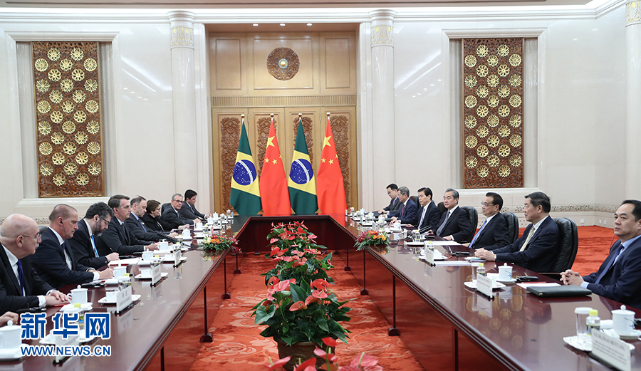 新华社北京10月25日电(记者白洁)国务院总理李克强25日下午在人民大会堂会见来华进行国事访问的巴西总统博索纳罗。