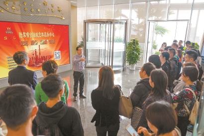 2019年10月28日,在上海中心大厦的陆家嘴金融城党群服务中心内,一场面向大学生的党课正在进行中。 本报记者 沈阳 摄