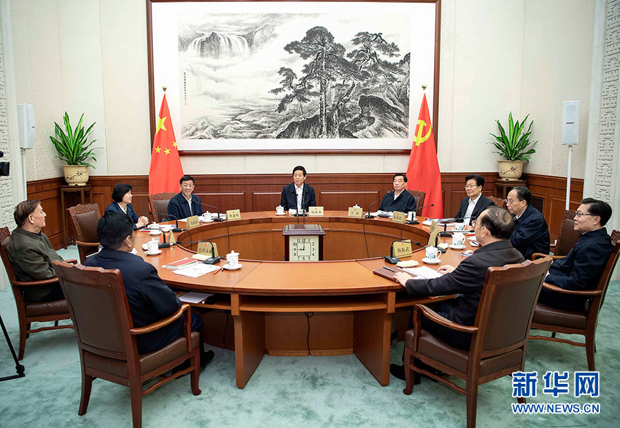 11月1日,中共全国人大常委会党组在北京举行会议,传达学习习近平总书记在党的十九届四中全会上的重要讲话和全会精神,统一思想认识,研究贯彻落实工作。中共中央政治局常委、全国人大常委会委员长、党组书记栗战书主持会议并讲话。 新华社记者 李涛 摄