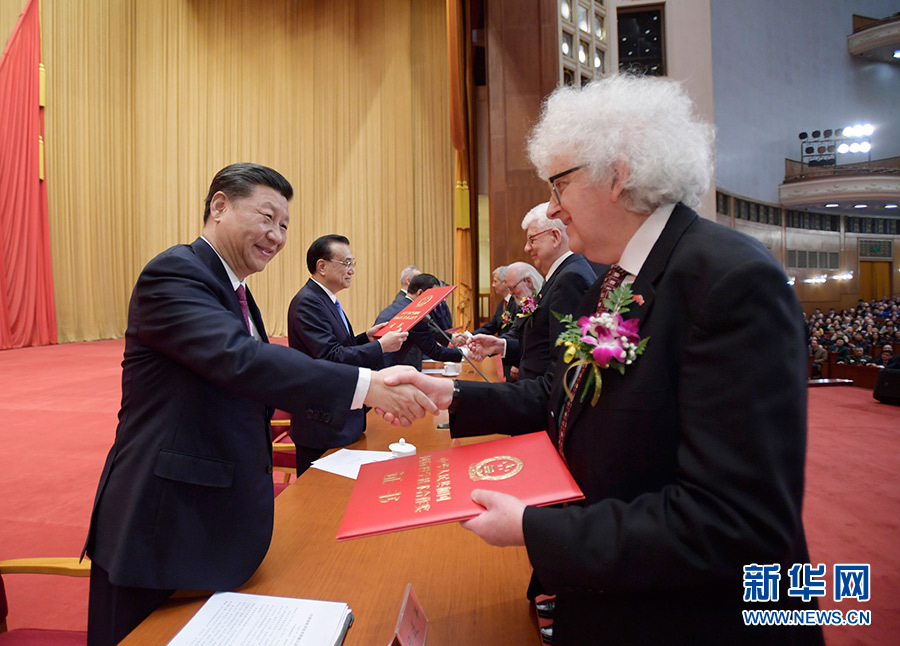 1月10日,2019年度国家科学技术奖励大会在北京人民大会堂隆重举行。这是习近平等党和国家领导人同获得2019年度国家最高科学技术奖的原中国船舶重工集团公司第七一九研究所黄旭华院士和中国科学院大气物理研究所曾庆存院士一道,为获得国家自然科学奖、国家技术发明奖、国家科学技术进步奖和中华人民共和国国际科学技术合作奖的代表颁发证书。 新华社记者 李学仁 摄