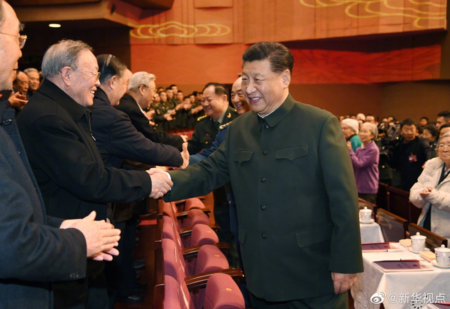 中央军委慰问驻京部队老干部迎新春文艺演出13日在京举行。中共中央总书记、国家主席、中央军委主席习近平,向在座的军队老同志和全军离退休老干部致以节日问候和新春祝福。(记者李宣良 梅世雄 摄影 李刚)