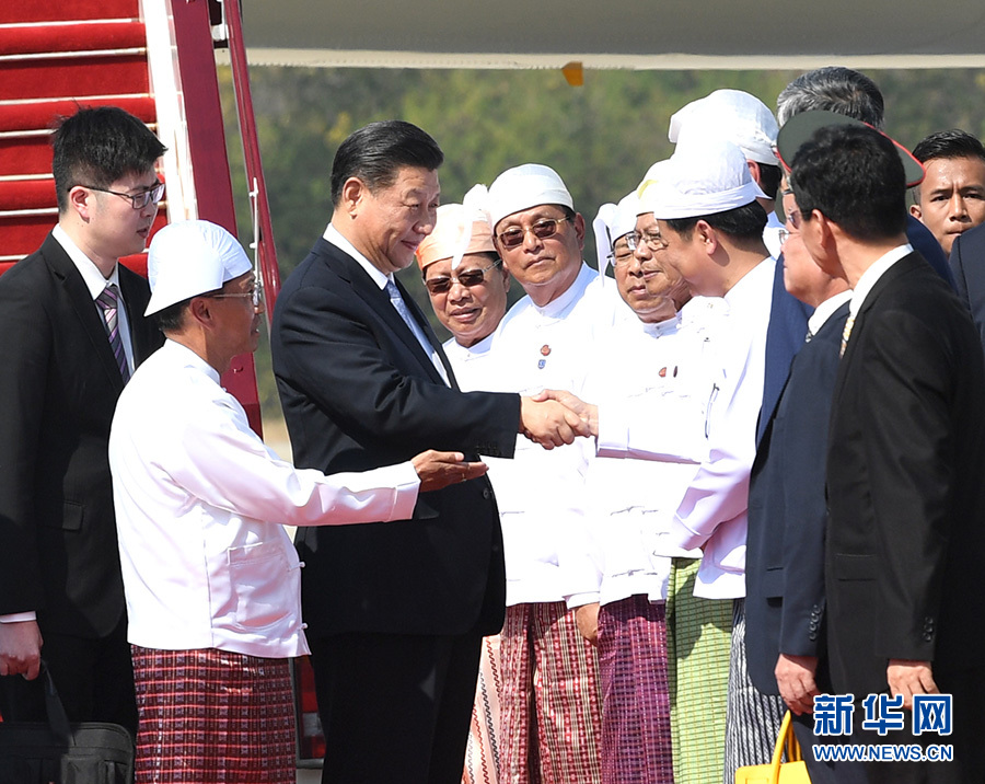 当地时间1月17日下午,国家主席习近平乘专机抵达内比都国际机场,开始对缅甸联邦共和国进行国事访问。习近平抵达时,缅甸第一副总统敏瑞率多名内阁部长在舷梯旁热情迎接。 新华社记者 饶爱民 摄