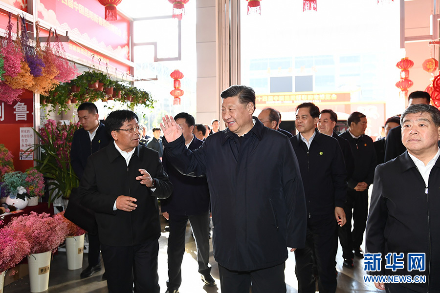 1月20日,正在云南考察的中共中央总书记、国家主席、中央军委主席习近平来到昆明国际会展中心,了解春节前年货市场供应及国内外商品展销情况,同现场群众亲切交流,并向全国各族人民致以新春祝福。 新华社记者 谢环驰 摄