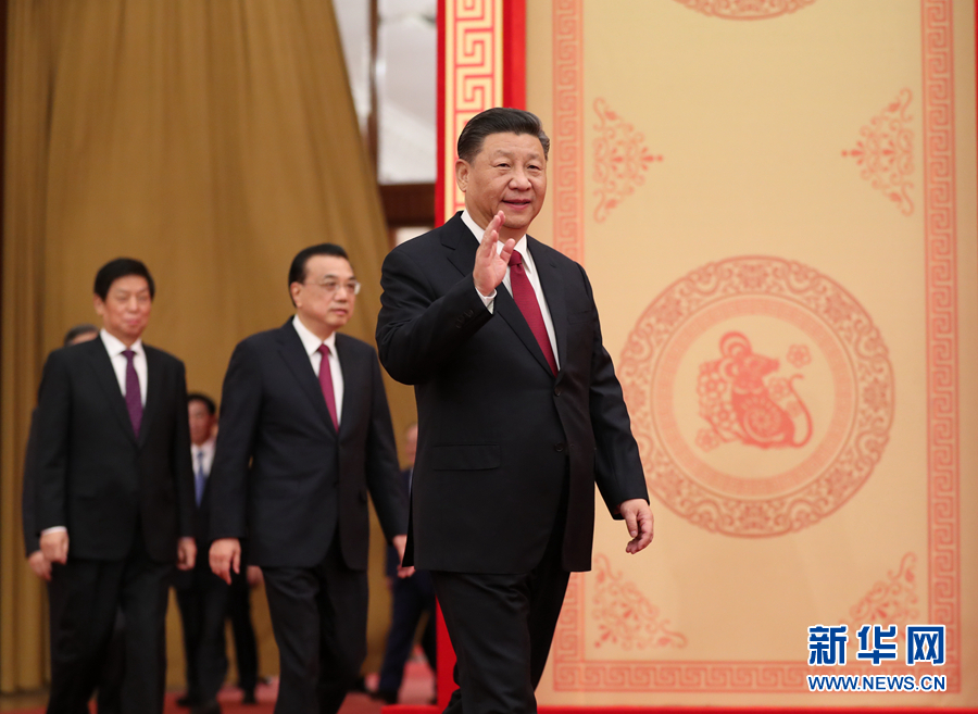 1月23日,中共中央、国务院在北京人民大会堂举行2020年春节团拜会。党和国家领导人习近平、李克强、栗战书、汪洋、王沪宁、赵乐际、韩正、王岐山等同首都各界人士欢聚一堂,共迎新春。 新华社记者 丁林 摄