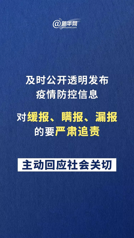 会议强调,要及时公开透明发布疫情防控信息,对缓报、瞒报、漏报的要严肃追责。主动回应社会关切。做好疫情防护知识宣传。加强与世界卫生组织及有关国家和地区的沟通合作。
