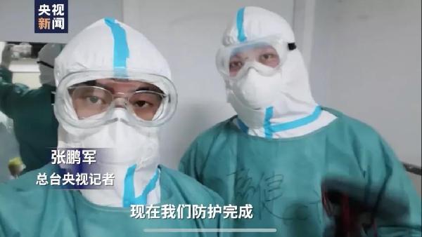 中央广播电视总台记者张鹏军、赖健进入武汉市汉口医院隔离区采访。