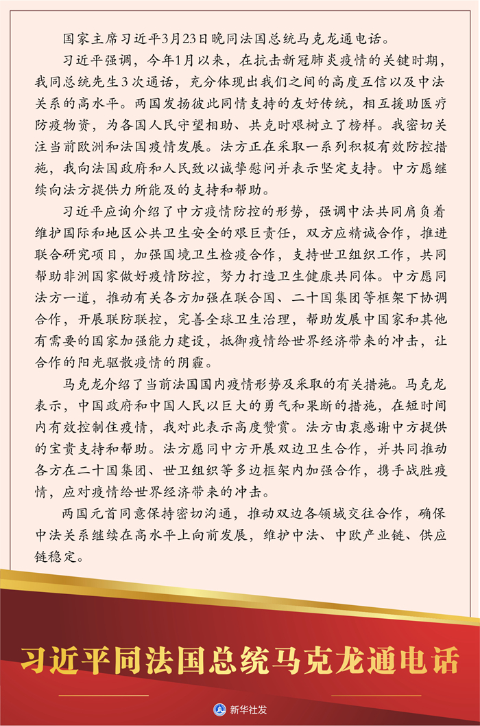 图表:习近平同法国总统马克龙通电话 新华社发