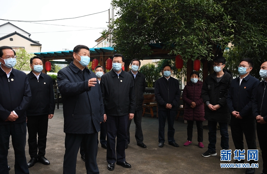 3月30日,中共中央总书记、国家主席、中央军委主席习近平在浙江省安吉县天荒坪镇余村考察,同村民们亲切交谈,了解该村多年来践行“绿水青山就是金山银山”理念、推动绿色发展发生的巨大变化。 新华社记者 燕雁 摄