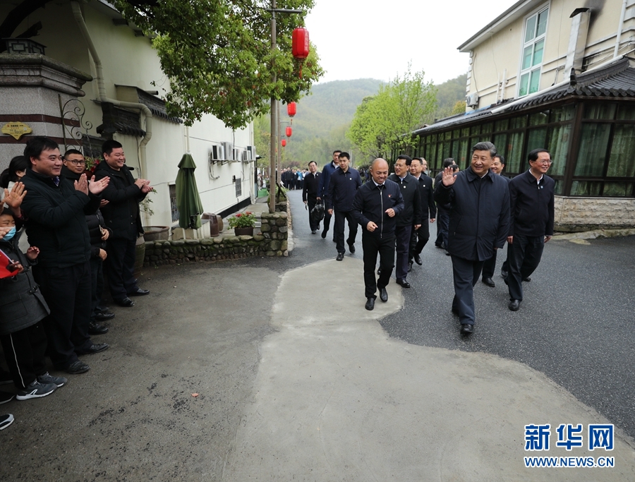 3月30日,中共中央总书记、国家主席、中央军委主席习近平在浙江省安吉县天荒坪镇余村考察,了解该村多年来践行“绿水青山就是金山银山”理念、推动绿色发展发生的巨大变化。 新华社记者 鞠鹏 摄