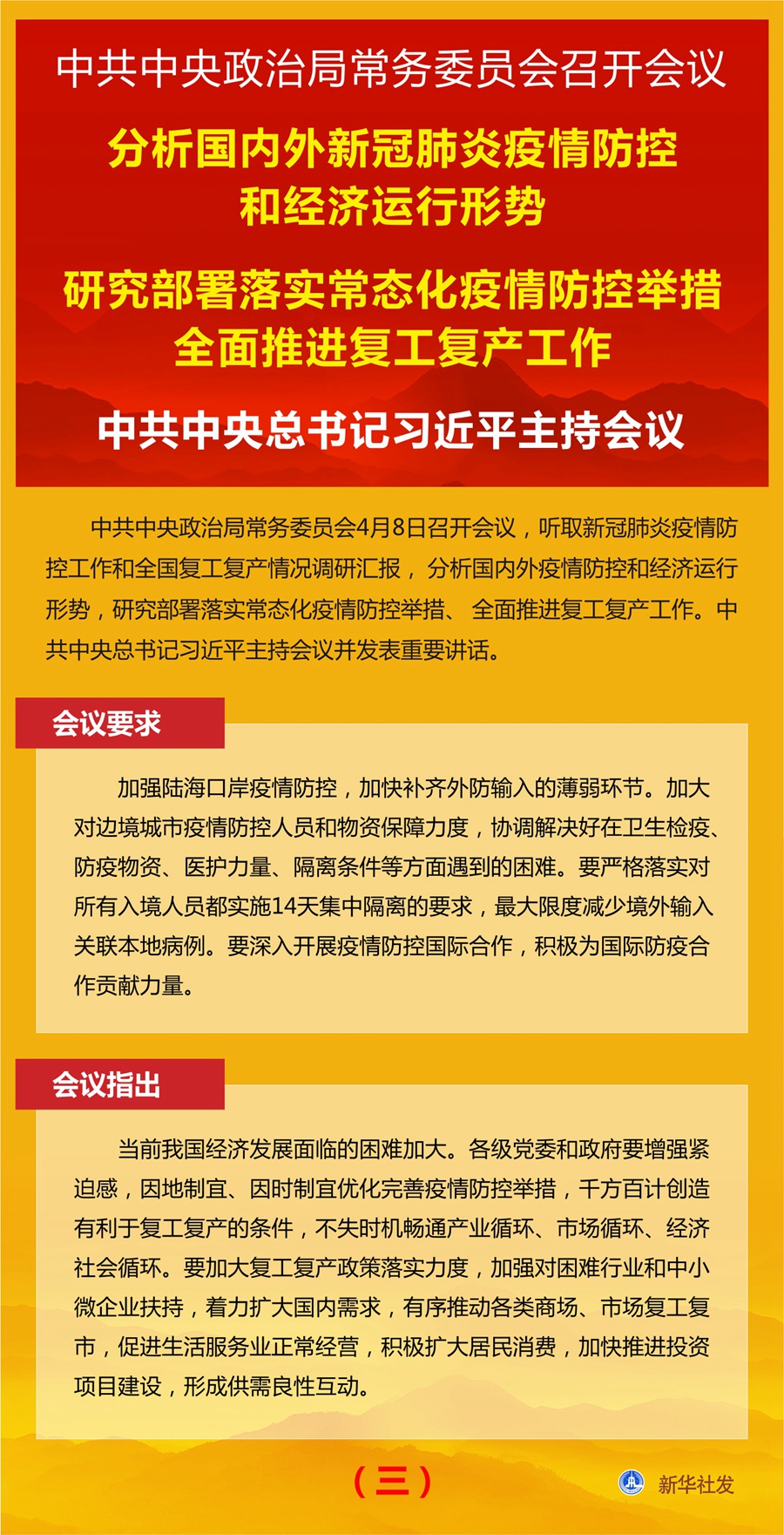图表:中共中央政治局常务委员会召开会议 分析国内外新冠肺炎疫情防控和经济运行形势 研究部署落实常态化疫情防控举措全面推进复工复产工作 中共中央总书记习近平主持会议(三) 新华社发