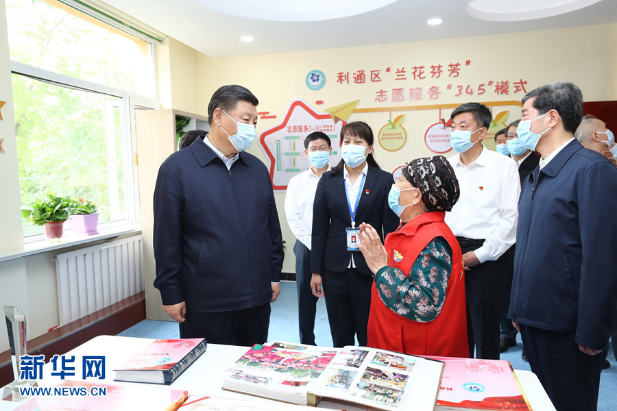 6月8日至10日,中共中央总书记、国家主席、中央军委主席习近平在宁夏考察。这是6月8日下午,习近平在吴忠市利通区金花园社区党群活动服务中心,同社区志愿者代表亲切交谈。 新华社记者 鞠鹏 摄