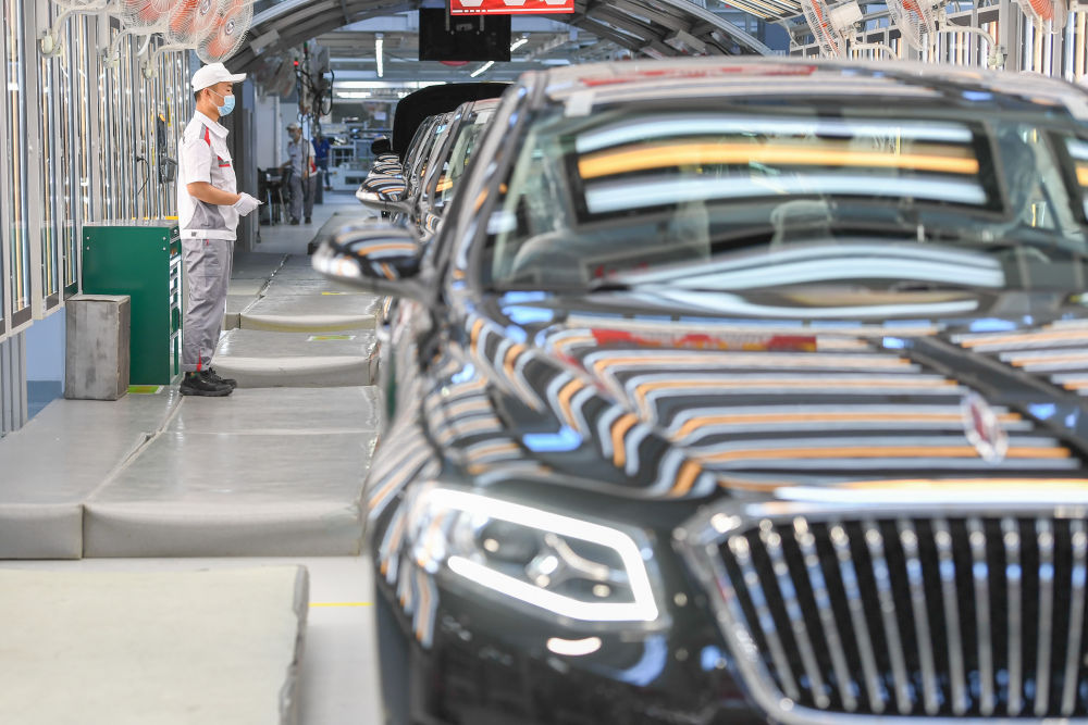 2020年6月19日,在位于吉林长春的红旗工厂总装车间,工人对车辆进行检查。新华社记者 张楠 摄