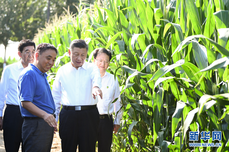 7月22日至24日,中共中央总书记、国家主席、中央军委主席习近平在吉林省考察。这是7月22日下午,在四平市梨树县国家百万亩绿色食品原料(玉米)标准化生产基地核心示范区地块,习近平走进玉米地,了解农业科技研发利用、黑土地保护情况。 新华社记者 燕雁 摄