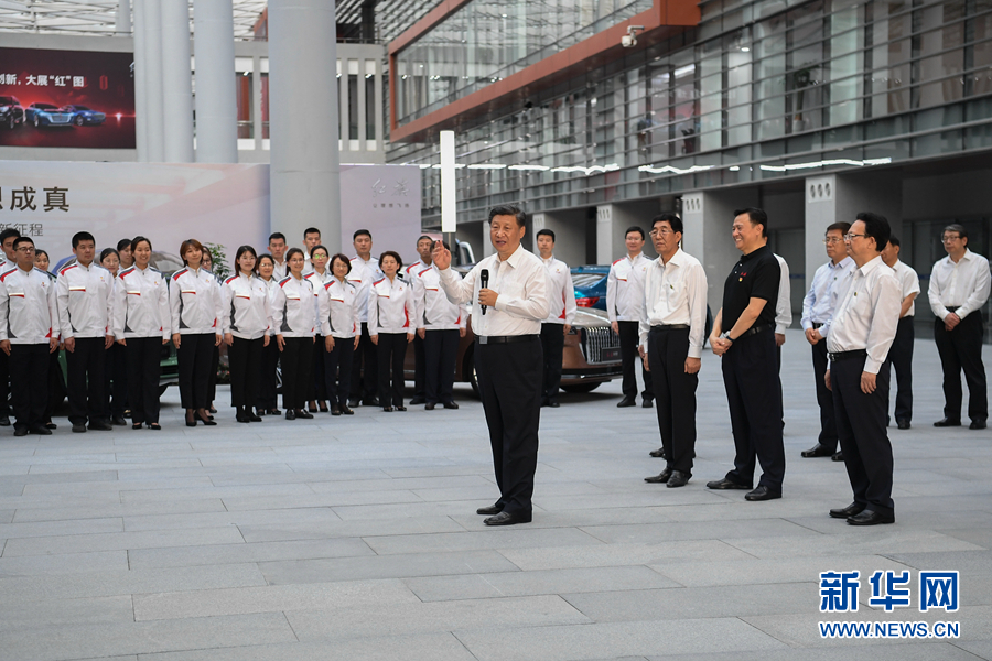 7月22日至24日,中共中央总书记、国家主席、中央军委主席习近平在吉林省考察。这是7月23日下午,习近平在长春市一汽集团研发总院,同职工代表亲切交流。 新华社记者 燕雁 摄