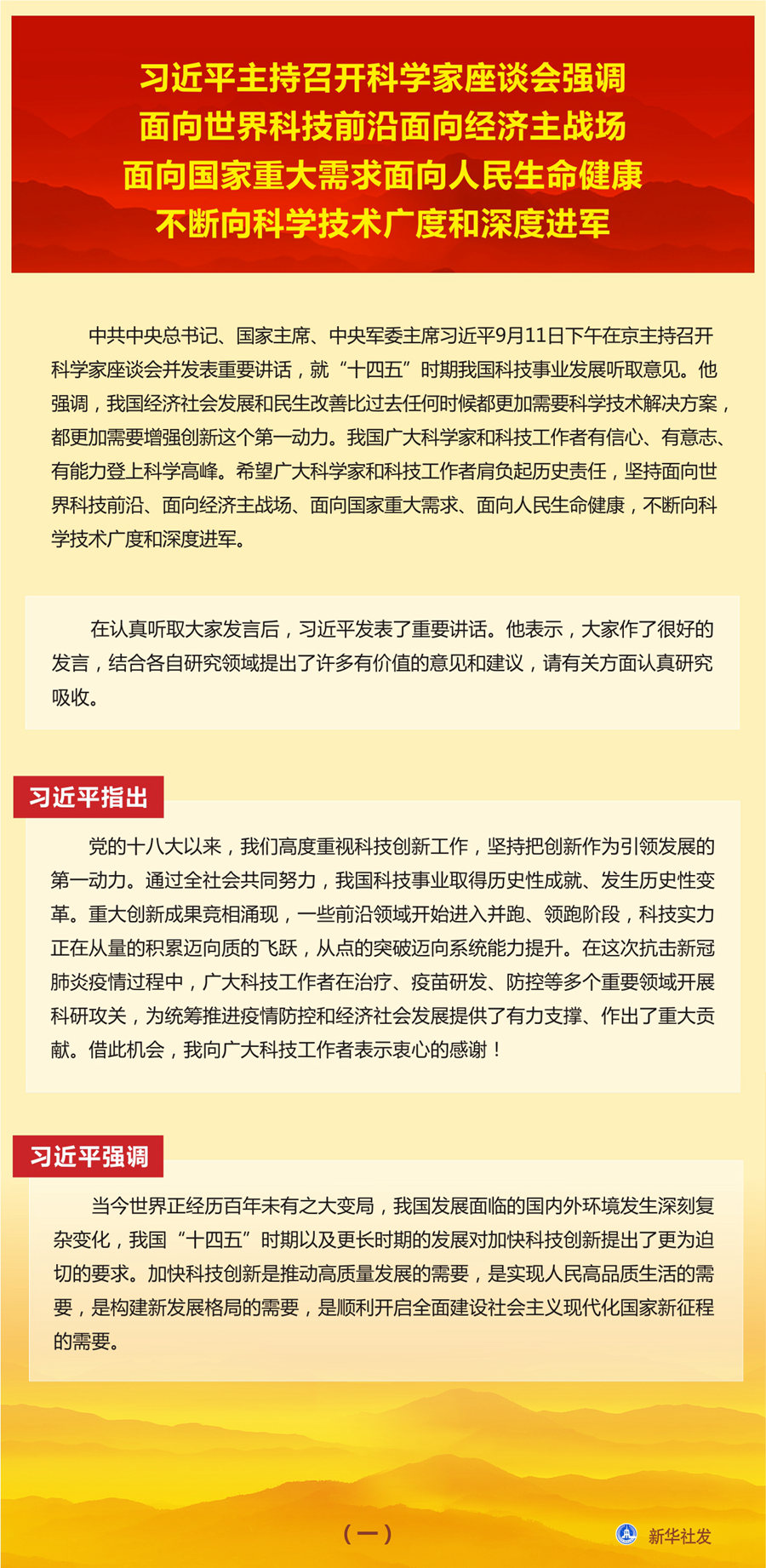 习近平主持召开科学家座谈会强调 面向世界科技前沿面向经济主战场 面向国家重大需求面向人民生命健康 不断向科学技术广度和深度进军