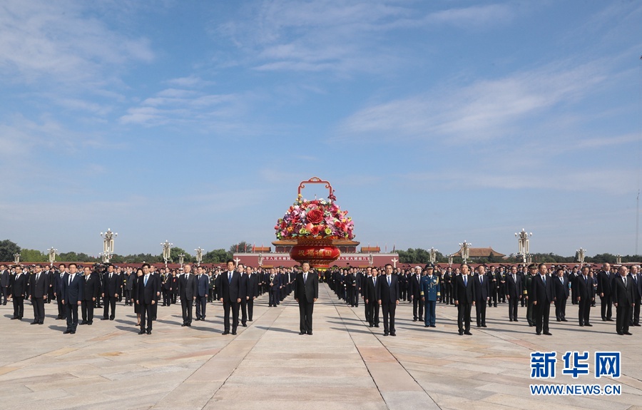 9月30日上午,党和国家领导人习近平、李克强、栗战书、汪洋、王沪宁、赵乐际、韩正、王岐山等来到北京天安门广场,出席烈士纪念日向人民英雄敬献花篮仪式。 新华社记者 鞠鹏 摄