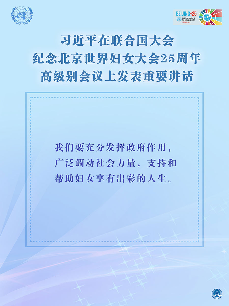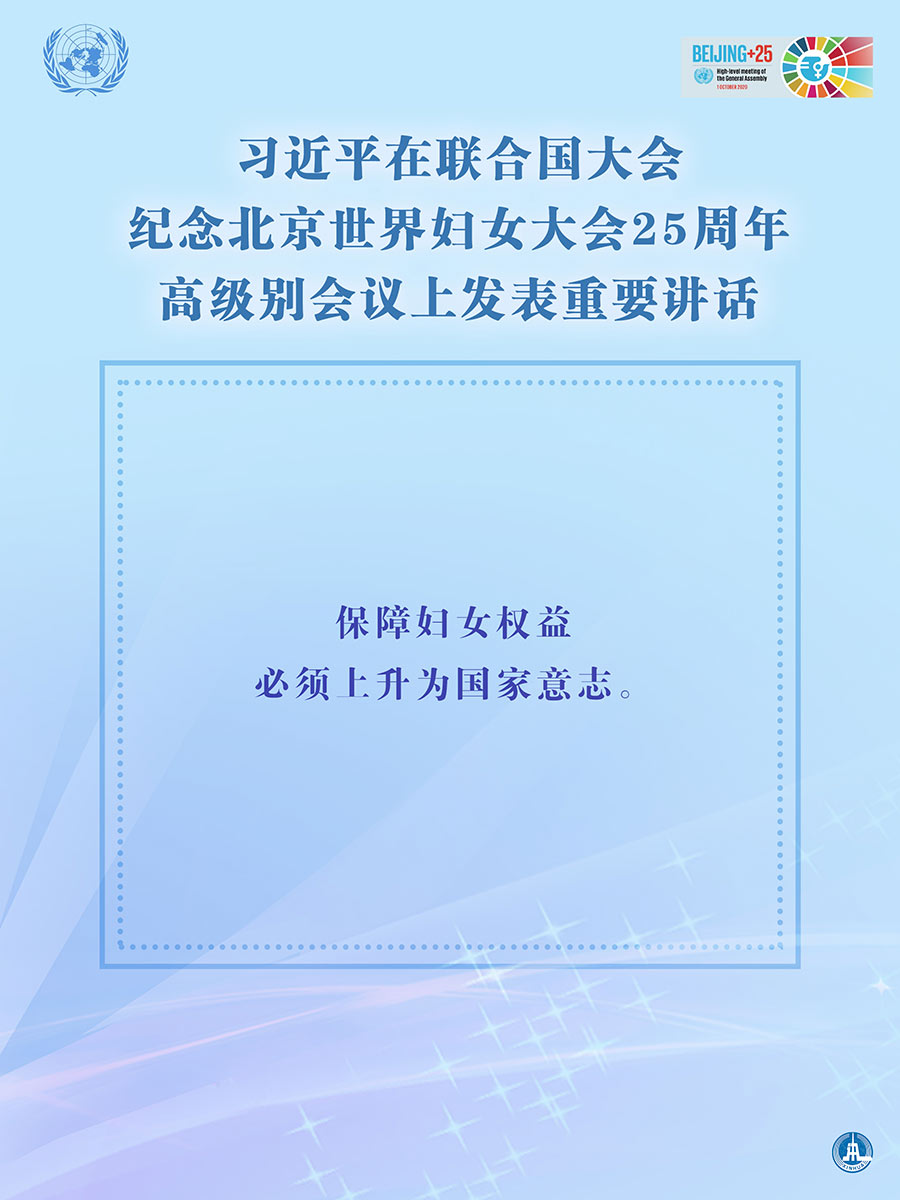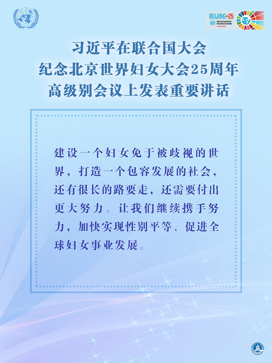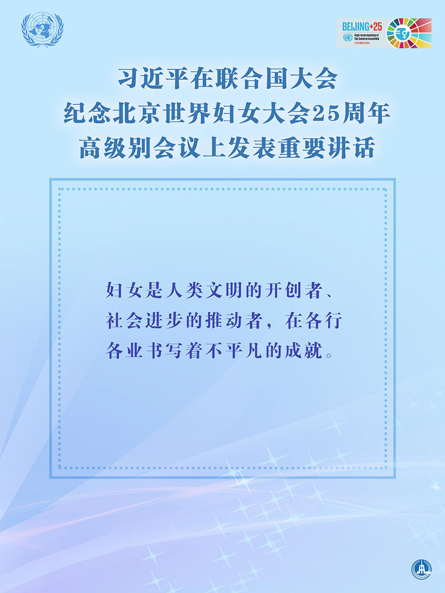 海报:习近平在联合国大会纪念北京世界妇女大会25周年高级别会议上发表重要讲话 新华社发