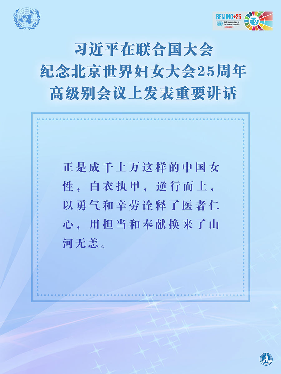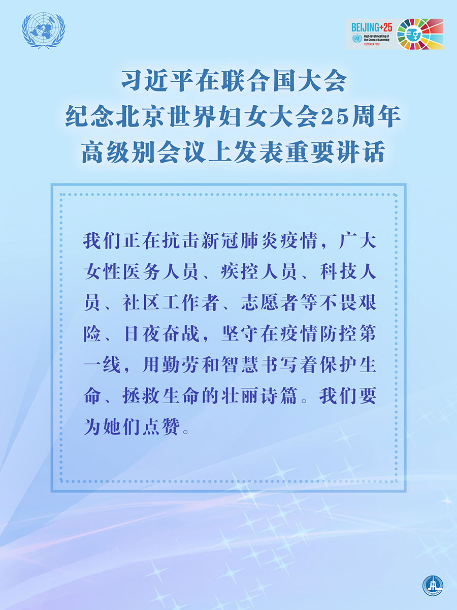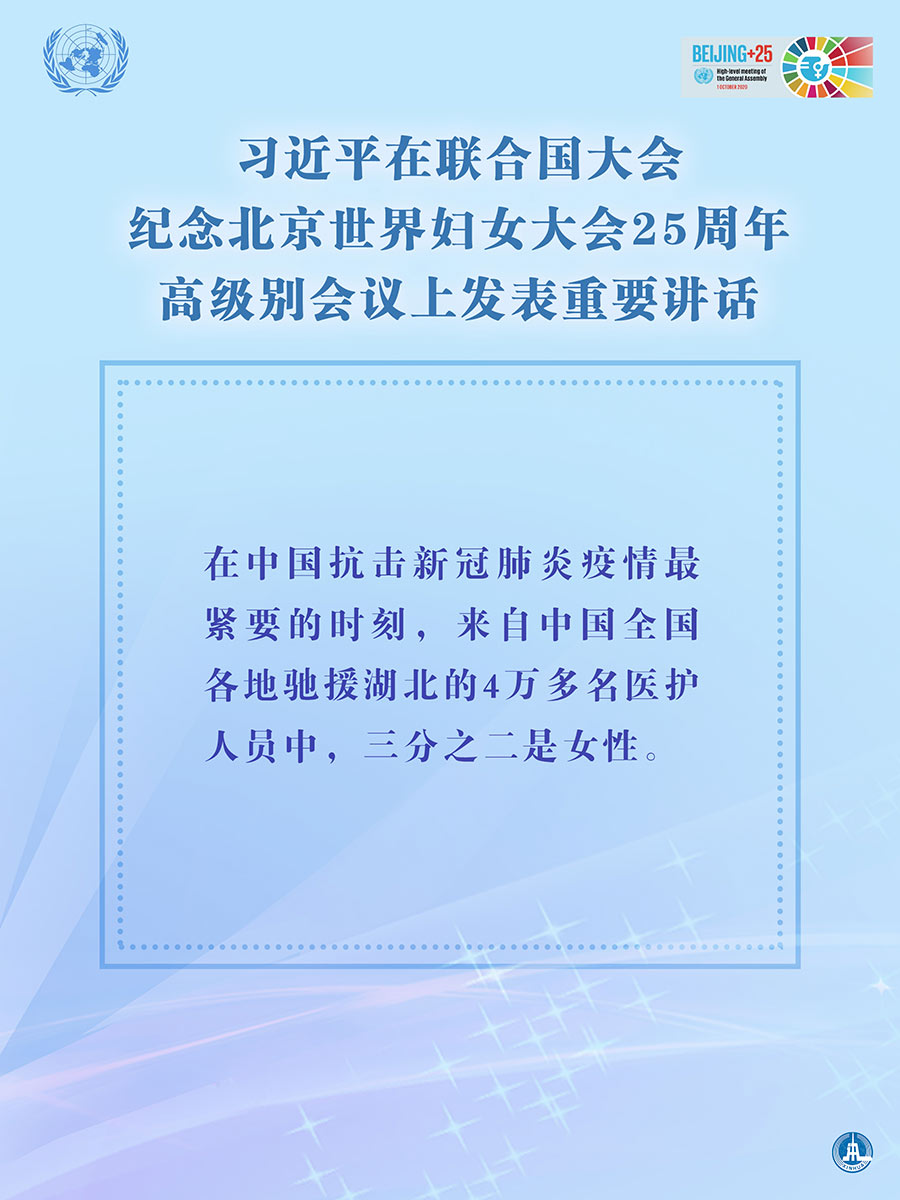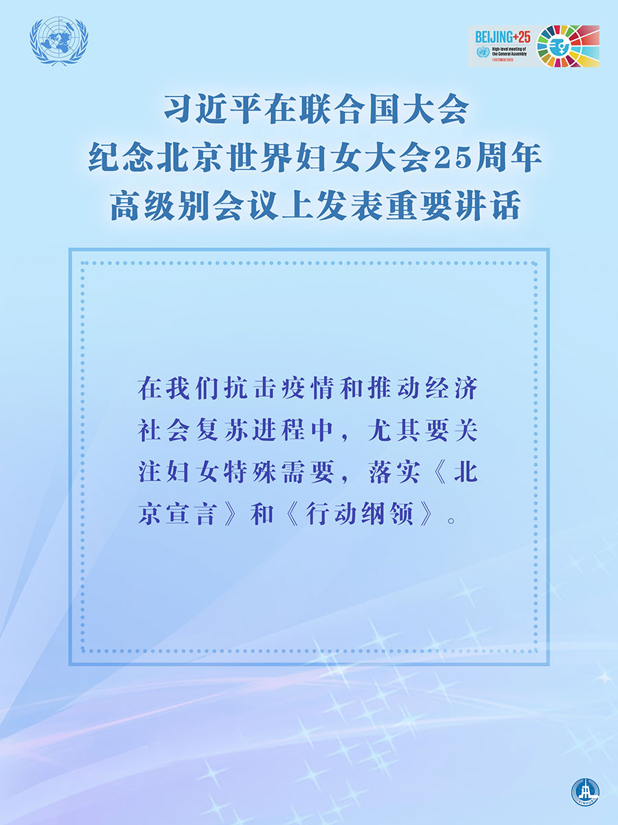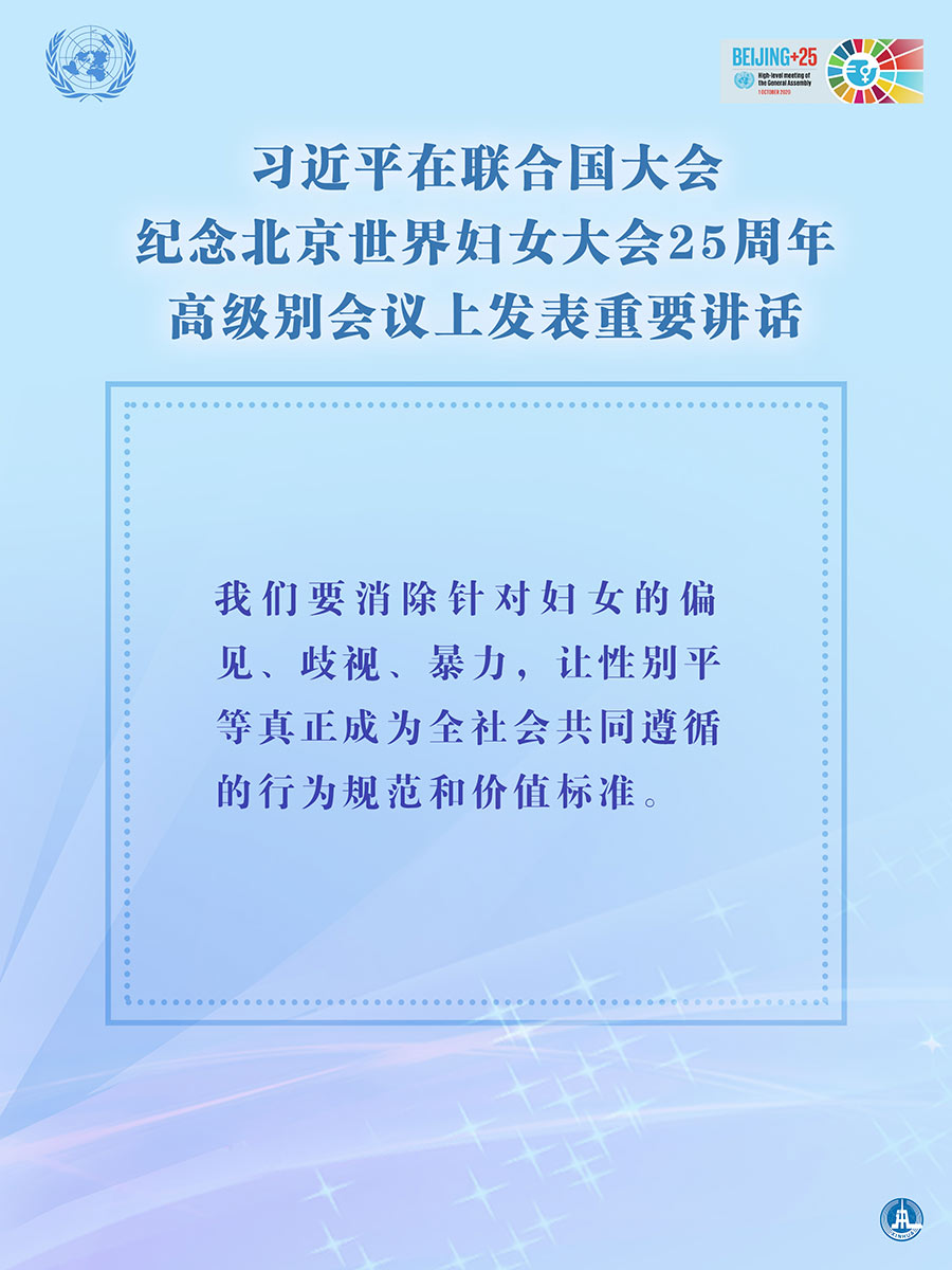 海报:习近平在联合国大会纪念北京世界妇女大会25周年高级别会议上发表重要讲话 新华社发