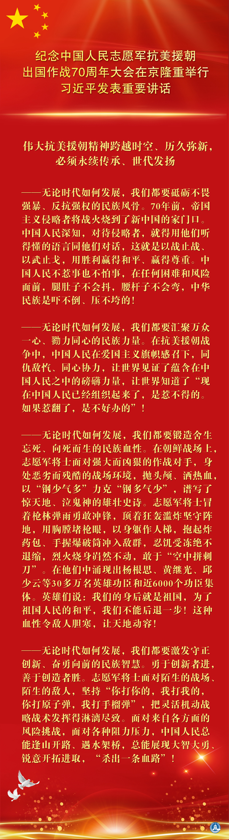 海报:纪念中国人民志愿军抗美援朝出国作战70周年大会在京隆重举行 习近平发表重要讲话
