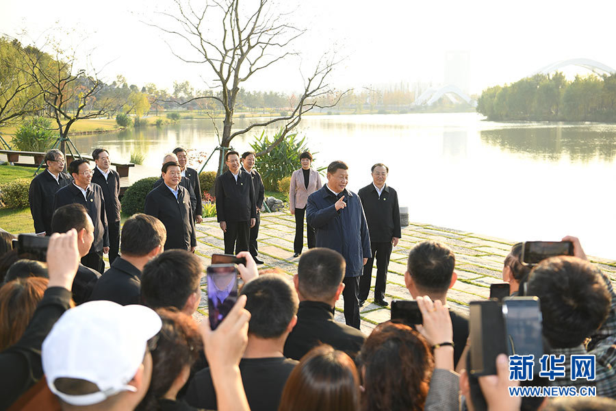 11月12日至13日,中共中央总书记、国家主席、中央军委主席习近平在江苏考察。这是13日下午,习近平在扬州市运河三湾生态文化公园考察时,同市民群众亲切交流。 新华社记者 燕雁 摄