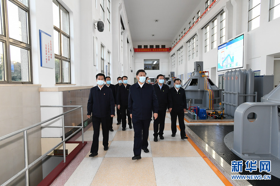 11月12日至13日,中共中央总书记、国家主席、中央军委主席习近平在江苏考察。这是13日下午,习近平在扬州市江都水利枢纽第四抽水站,察看抽水泵运行情况。新华社记者 谢环驰 摄