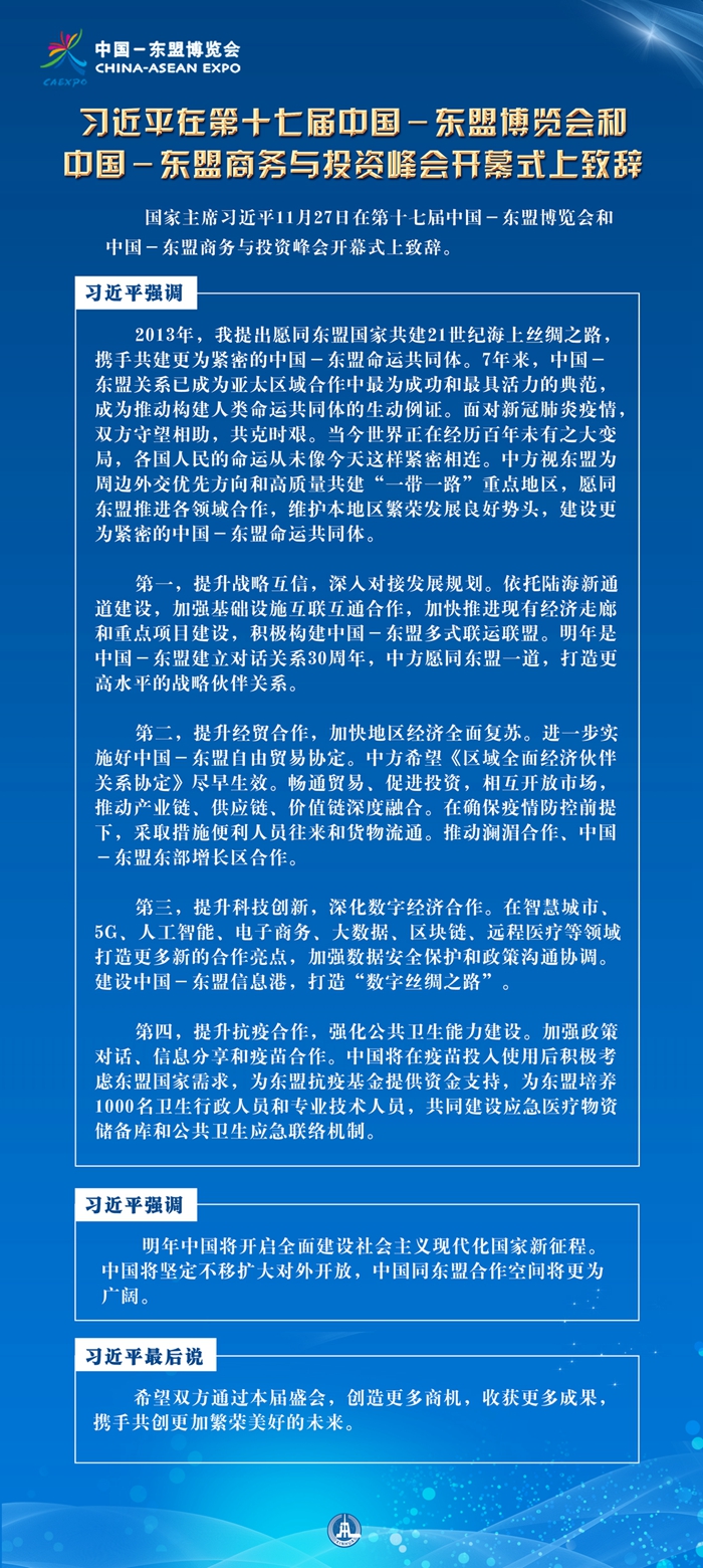 习近平在第十七届中国-东盟博览会和中国-东盟商务与投资峰会开幕式上致辞