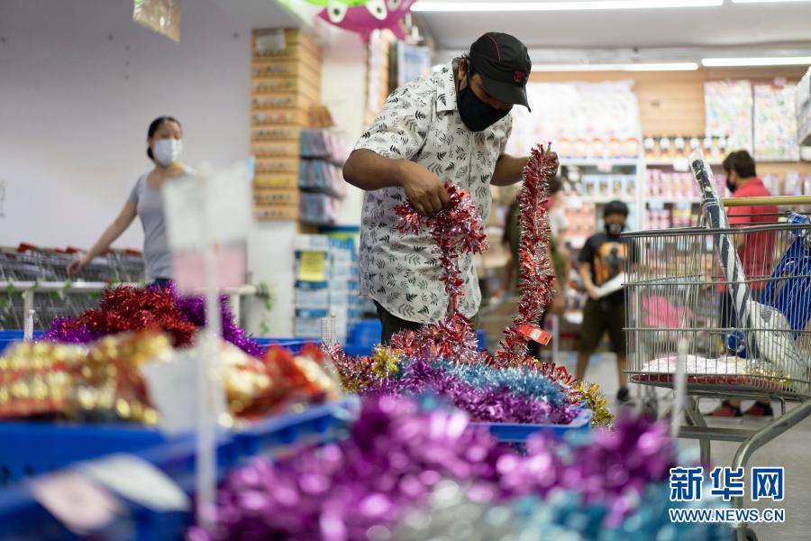 12月18日,在阿根廷布宜诺斯艾利斯,当地民众在华人商铺采购圣诞季用品。物美价优的中国商品成为许多阿根廷人的节日首选。新华社发(马丁·萨巴拉摄)