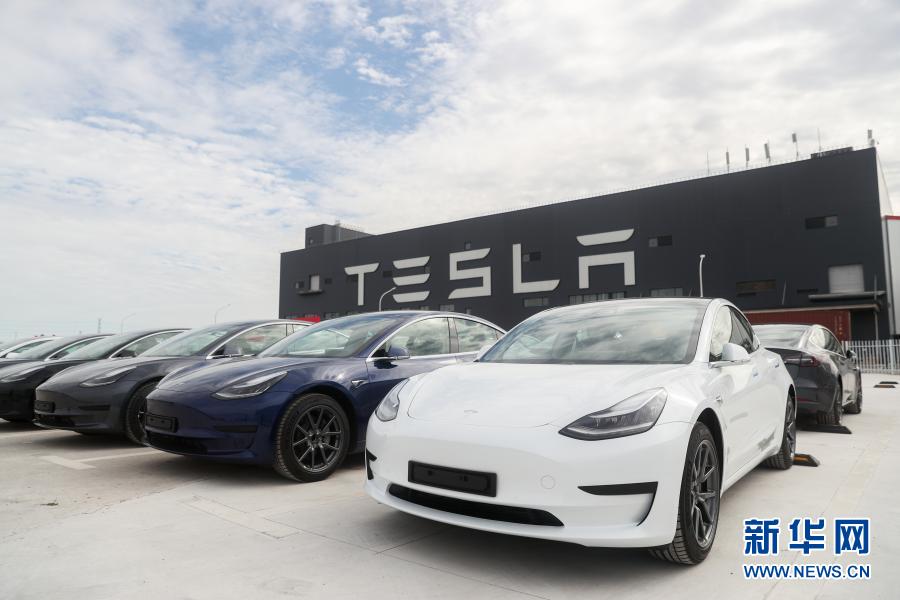 10月26日拍摄的特斯拉上海超级工厂内的Model 3汽车。新华社记者 丁汀 摄