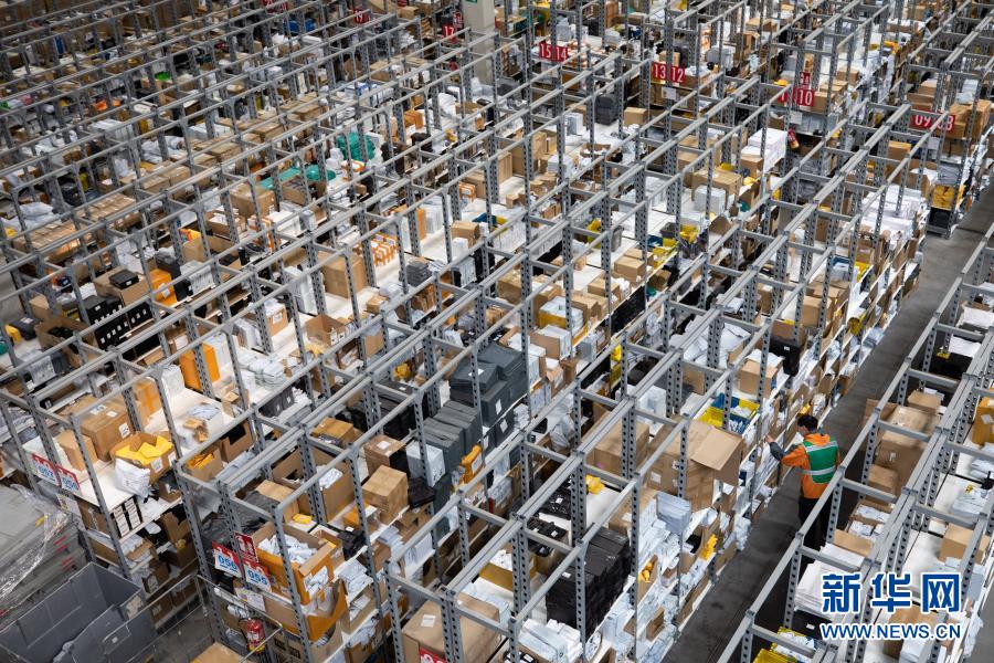 11月11日,在西班牙瓜达拉哈拉市的菜鸟海外仓,工作人员正在分拣商品。新华社记者 孟鼎博 摄