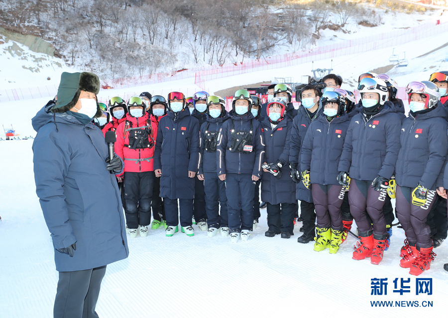 1月18日至20日,中共中央总书记、国家主席、中央军委主席习近平在北京、河北考察,并主持召开北京2022年冬奥会和冬残奥会筹办工作汇报会。这是18日下午,习近平在位于北京市延庆区的国家高山滑雪中心,同赛场保障工作人员、运动员、教练员等亲切交流。