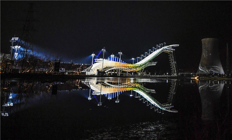 这是2019年12月14日拍摄的北京首钢滑雪大跳台夜景。新华社记者 夏一方 摄