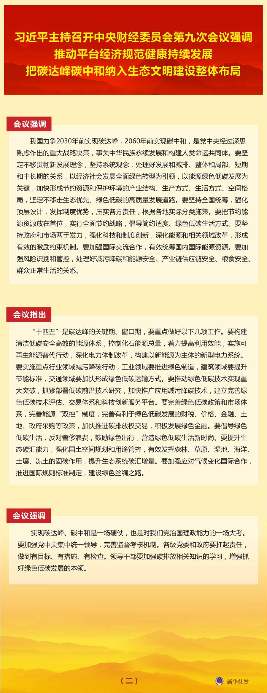 图表:习近平主持召开中央财经委员会第九次会议强调 推动平台经济规范健康持续发展 把碳达峰碳中和纳入生态文明建设整体布局 新华社发