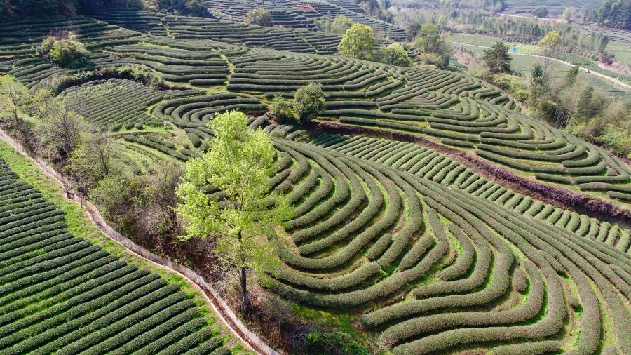 无人机镜头下的燕子窠生态茶园。新华社记者 姜克红 摄