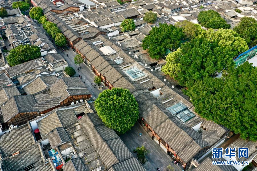 福州三坊七巷文化街区的古厝绿树(2021年3月17日摄,无人机照片)。新华社记者 姜克红 摄