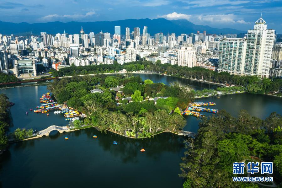 福州西湖公园及周边城市景观(2020年5月18日摄,无人机照片)。新华社记者 姜克红 摄