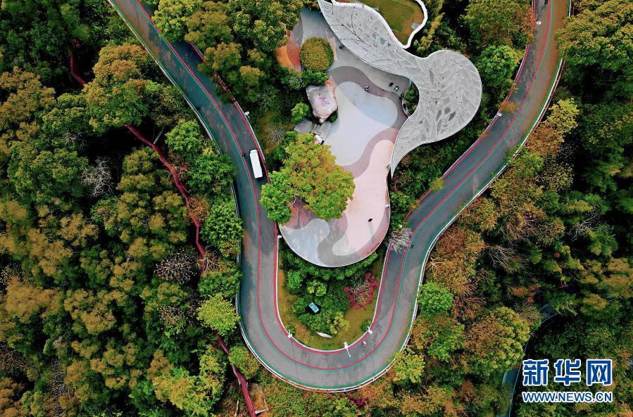 在福州郊野公园拍摄的森林步道景观(2021年3月16日摄,无人机照片)。新华社记者 魏培全 摄
