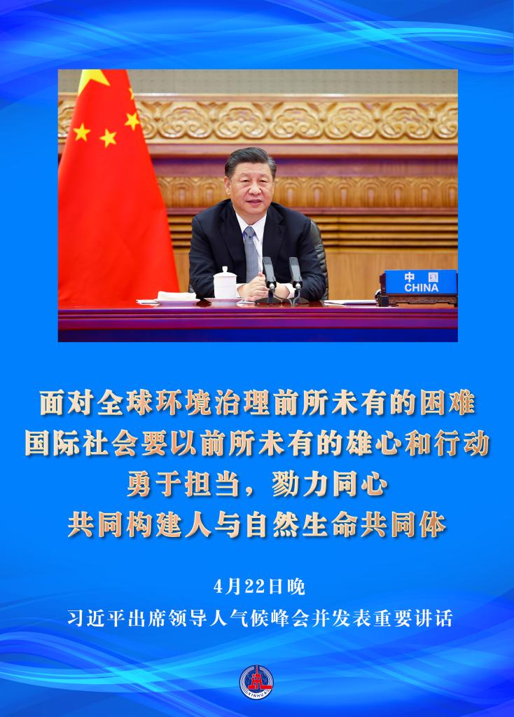 海报:习近平在“领导人气候峰会”上发表重要讲话 新华社发