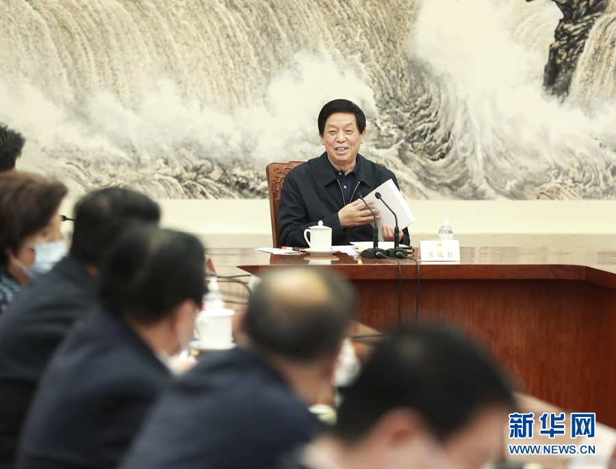4月29日,中共中央政治局常委、全国人大常委会委员长栗战书在北京主持召开会议,围绕加强和改进新时代人大工作同地方人大常委会负责同志交流座谈、听取意见。新华社记者 庞兴雷 摄