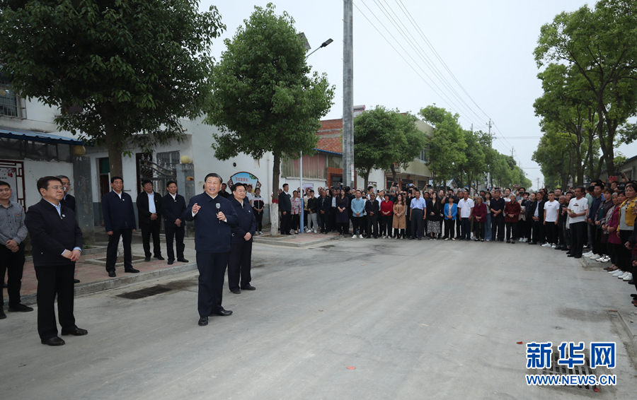 5月14日上午,中共中央总书记、国家主席、中央军委主席习近平在河南省南阳市主持召开推进南水北调后续工程高质量发展座谈会并发表重要讲话。这是座谈会前,习近平于13日在南阳市淅川县九重镇邹庄村考察时,同因工程建设搬迁到这里的村民们亲切交流。新华社记者 鞠鹏 摄