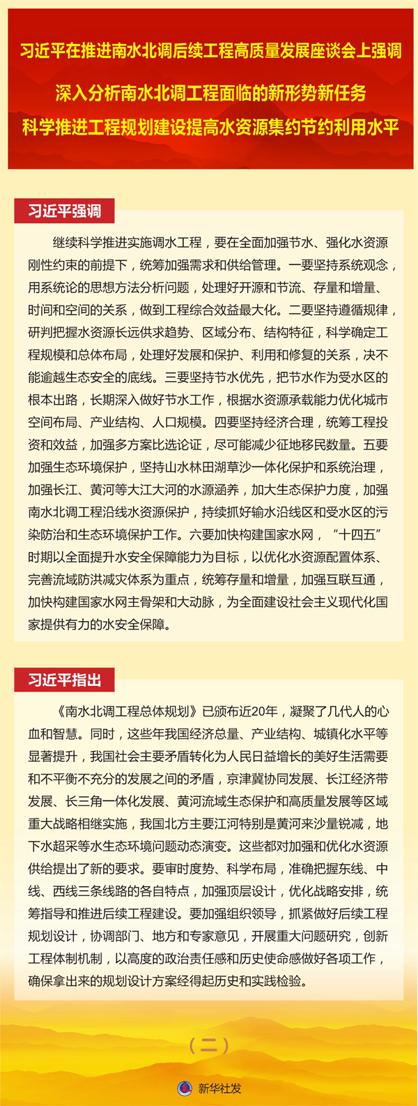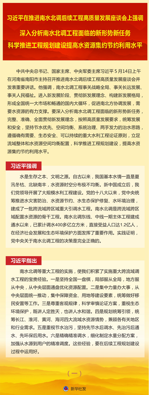 习近平在推进南水北调后续工程高质量发展座谈会上强调 深入分析南水北调工程面临的新形势新任务 科学推进工程规划建设提高水资源集约节约利用水平