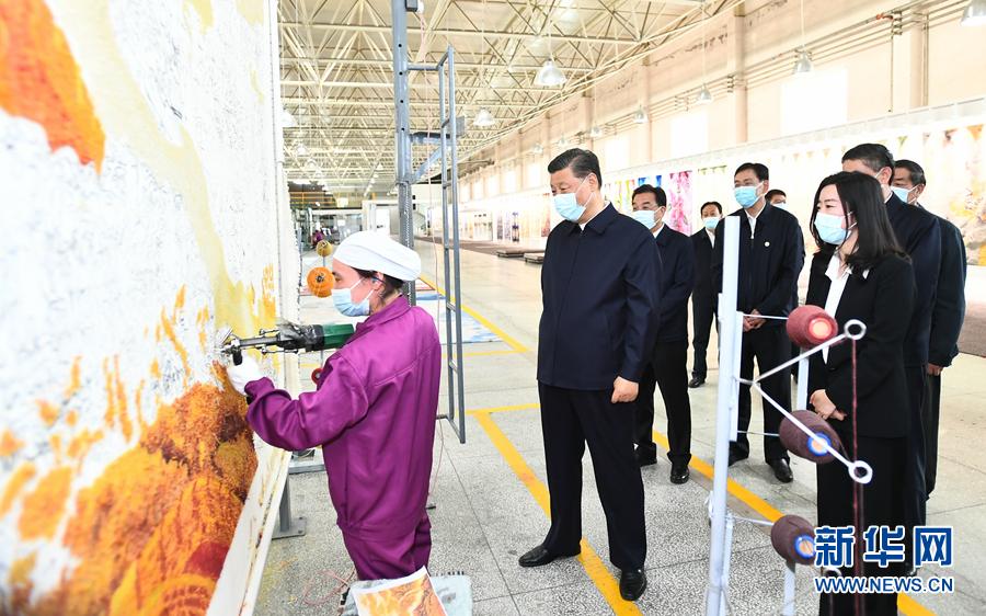 6月7日至9日,中共中央总书记、国家主席、中央军委主席习近平在青海考察。这是7日下午,习近平在青海圣源地毯集团有限公司生产车间考察。新华社记者 谢环驰 摄