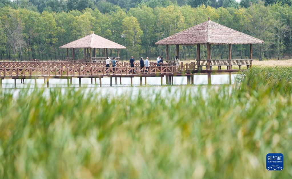 游客在吉林省松原市查干湖野鸭岛参观游览(9月18日摄)。 新华社记者 许畅 摄