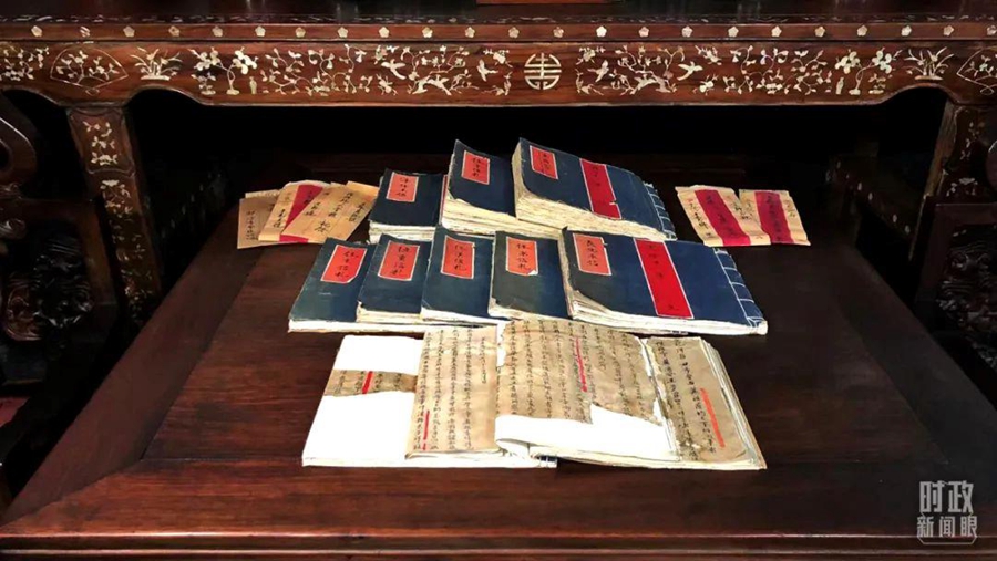 △日昇昌票号博物馆中展出的汇票和账本。(总台央视记者许永松拍摄)