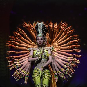 中国残疾人艺术团的演员在巴西圣保罗表演《千手观音》(2019年11月6日摄)。新华社发(拉赫尔·帕特拉索 摄)