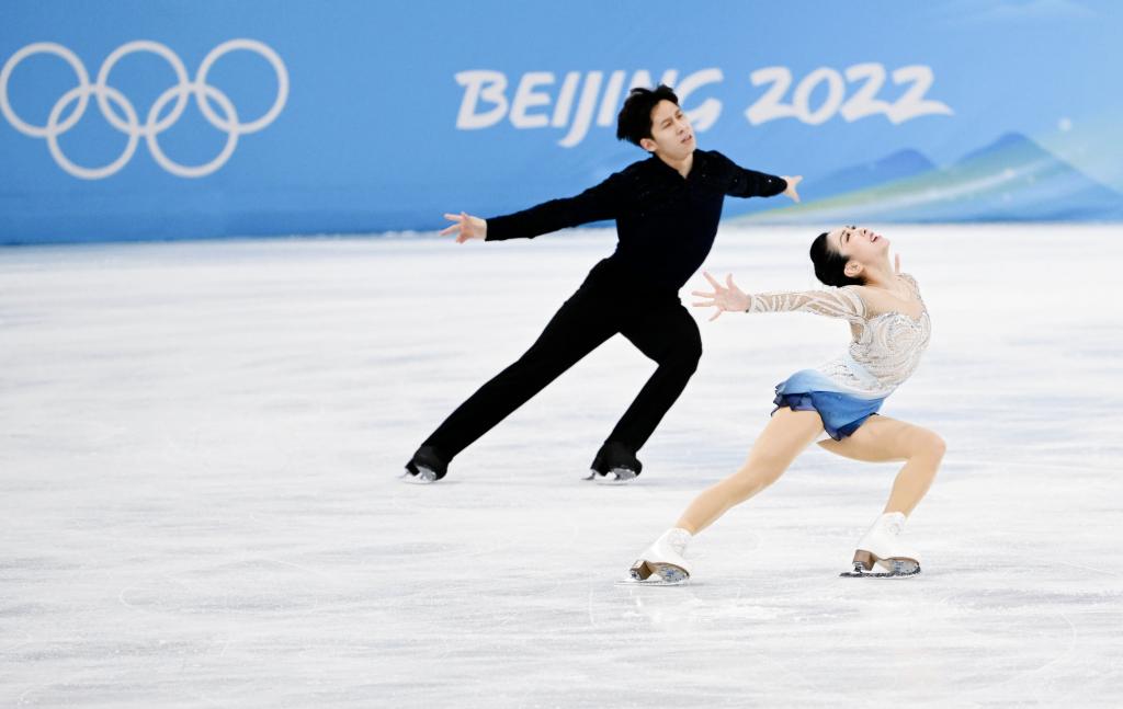 2月19日,北京2022年冬奥会花样滑冰双人滑自由滑比赛,中国选手隋文静(前)/韩聪夺得双人滑冠军。新华社记者李一博摄