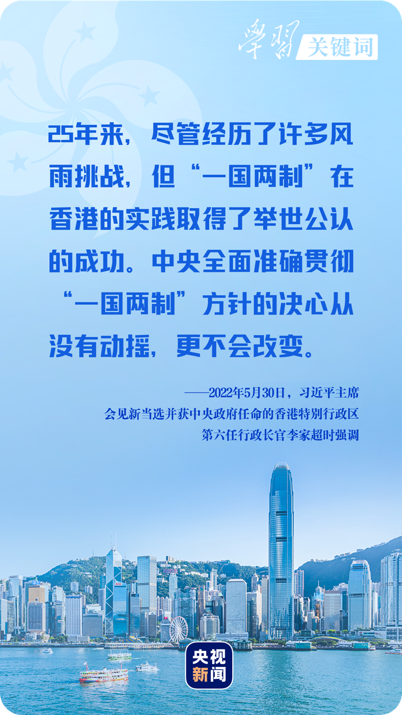“满足香港居民对美好生活的期待,继续推动香港各项事业向前发展,归根到底是要坚守方向、踩实步伐,全面准确理解和贯彻‘一国两制’方针。”习近平主席态度鲜明。