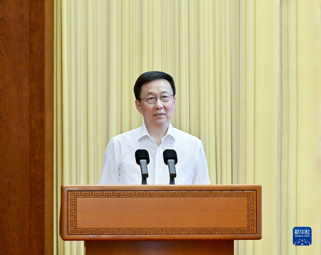 7月7日,南水北调后续工程中线引江补汉工程开工动员大会以视频连线方式在北京和湖北举行。中共中央政治局常委、国务院副总理、推进南水北调后续工程高质量发展领导小组组长韩正出席大会,并宣布工程开工。新华社记者 高洁 摄