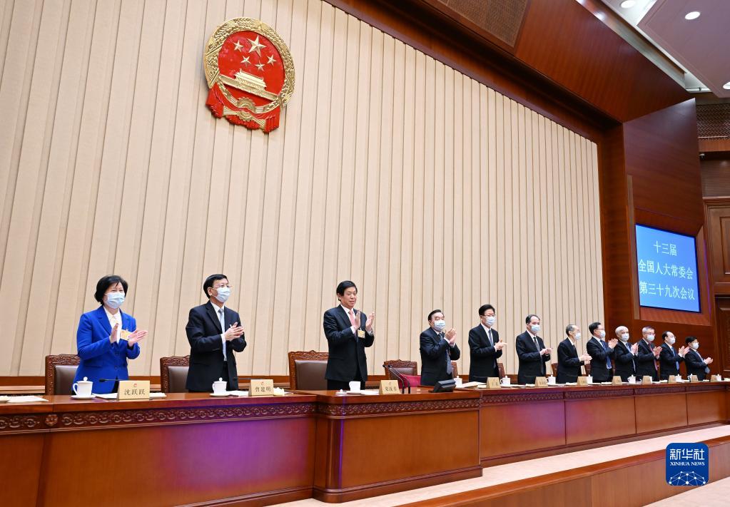 2月24日,十三届全国人大常委会第三十九次会议在北京人民大会堂闭幕。栗战书委员长主持闭幕会。新华社记者 张领 摄