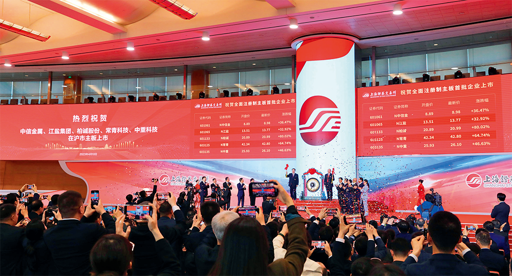 沪深交易所主板注册制首批企业上市仪式现场(2023年4月10日摄) 方喆摄/本刊